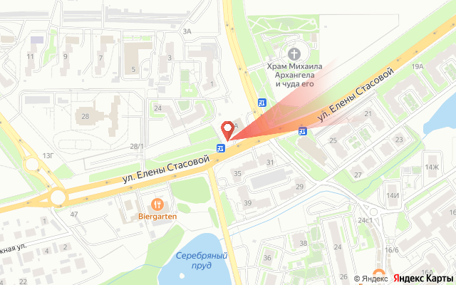 Елены Стасовой, пересечение с ул. Мирошниченко (АЗС 25 часов)