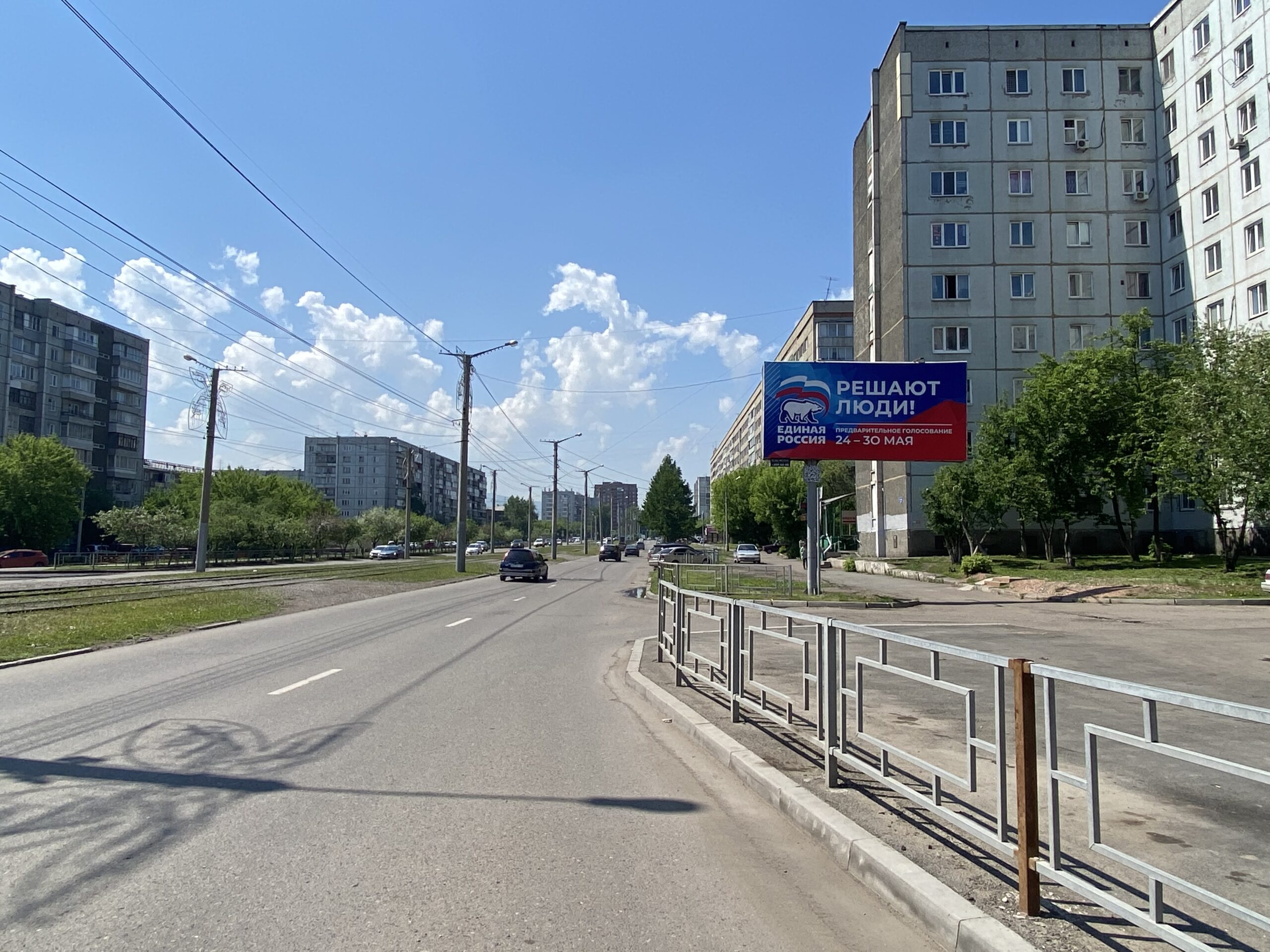 9 мая/Авиаторов, со стороны здания по ул. Авиаторов, 68, на разделительной полосе