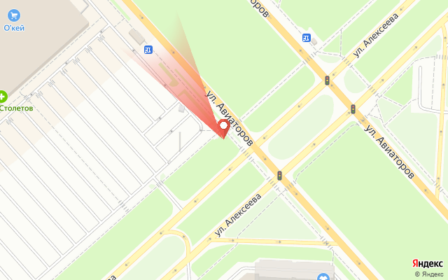 Авиаторов, пересечение с ул. Алексеева со стороны ТРЦ Планета