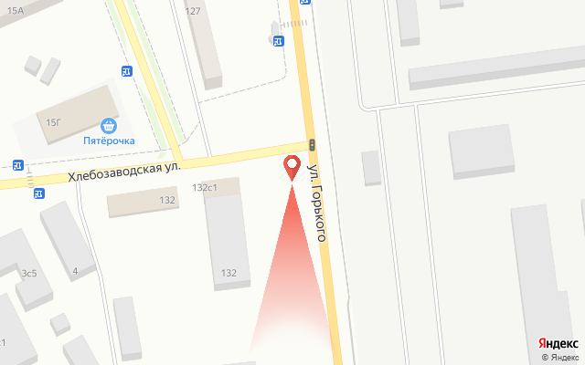 Горького, в 170 метрах южнее поворота в 7 микрорайон